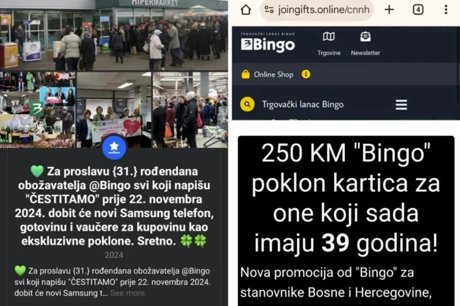 U izjavi navode: „Sve naše nagradne igre i darivanja Bingo objavljuje isključivo na svojim službenim stranicama www.bingobih.ba i www.bingotuzla.ba, te mrežama Facebook i Instagram. Ograđujemo se od bilo kakve odgovornosti vezane za spomenute lažne nagradne igre.“ Priložene slike jasno pokazuju kako izgledaju lažne stranice i objave, što bi trebalo pomoći građanima da ih prepoznaju i izbjegnu prijevare.