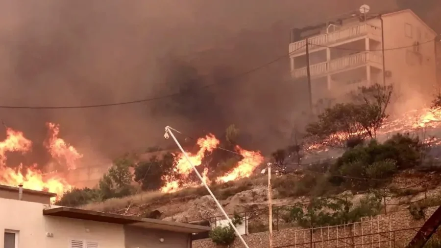 Veliki požar koji je jutros izbio na području između Omiša i Makarske, u mjestima Pisak, Marušići i Mimice, i dalje nije pod kontrolom. Zbog jakog vjetra vatra se brzo širi prema naseljenim područjima, a vatrogasne snage spašavaju kuće jednu po jednu. Izgorjelo je najmanje 12 kuća, a stradala je i uljara Orgula u Marušićima, prenosi Index.hr.