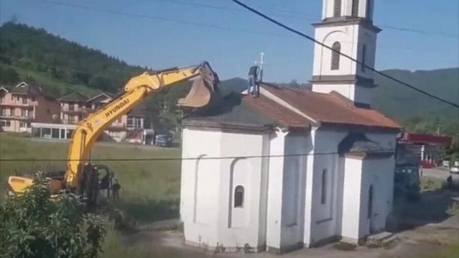 Rano jutros počelo je uklanjanje bespravno izgrađene crkve iz dvorišta Fate Orlović u Konjević Polju.