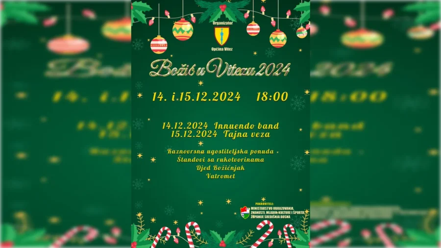 Središnji dio ovogodišnjih Božićnih dana u Vitezu je tradicionalna manifestacija „Božić u Vitezu 2024.“, koja će se održati na Gradskom trgu u subotu i nedjelju, 14. i 15. prosinca. Ovaj događaj predstavlja savršenu priliku za druženje, uživanje u blagdanskom ozračju i podršku lokalnoj zajednici.
