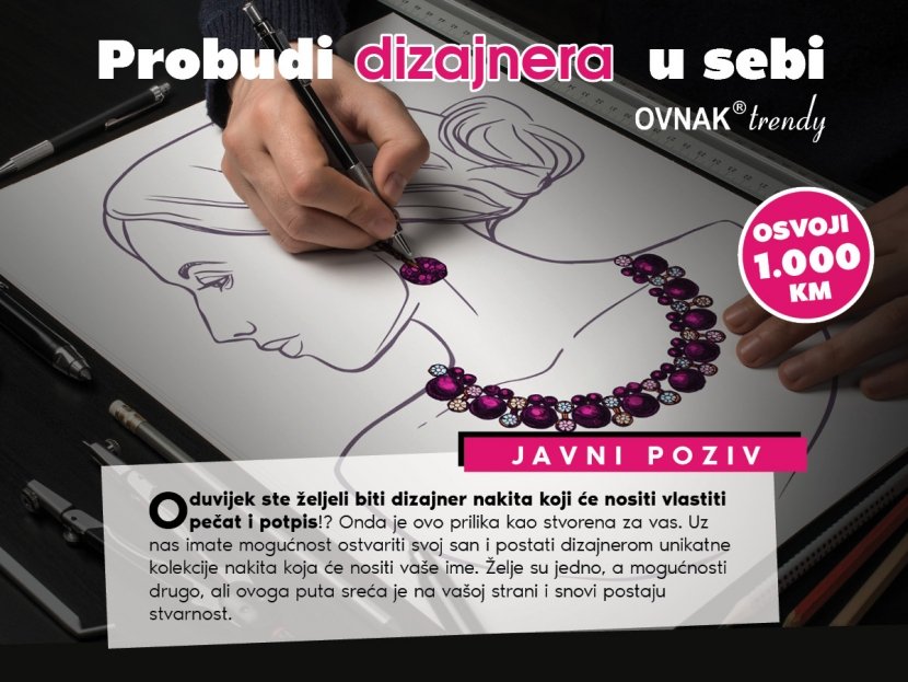 Osmislite i kreirajte skicu i dizajn posebne kolekcije nakita koja će nositi vaše ime, poručuju iz Ovnaka.