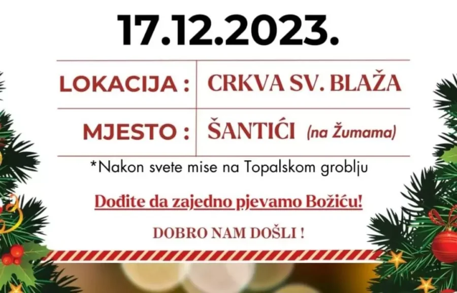Kako su se samoprozvali, organizirana grupa mještana i župljana župe Vitez “Ostaše” pozivaju na Advent u Šantićima (na Žumama). U zanimljivom plakatu u nastavku pogledajte poziv na ovaj, još jedan, lijepi događaj u Vitezu. “Dođite da zajedno pjevamo Božiću”, poručuju organizatori.
