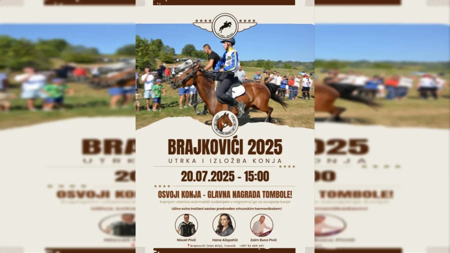 U srcu Srednje Bosne, u mjestu Brajkovići (Han Bila), 20. srpnja 2025. godine s početkom u 15:00 sati, održava se drugi po redu spektakl – BRAJKOVIĆI 2025 – Utrka i izložba konja.