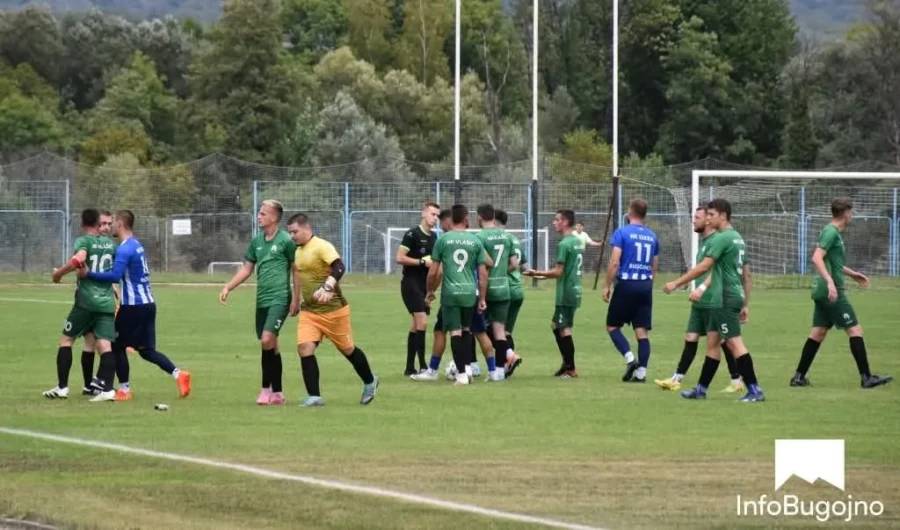 Domaći tim poveo je ranim golom (1:0), ali je Vlašić ubrzo izjednačio na 1:1. Upravo nakon tog pogotka uslijedile su, kako tvrde gosti, skandalozne odluke glavnog suca Eldara Avdibasića iz okoline Bugojna. Na običan prigovor, Avdibasić je direktnim crvenim kartonom isključio najboljeg igrača i kapitena Vlašića Abdela Rosića, dok je Hamid Glamočić dobio žuti karton, uz pokušaj da bude i isključen. Uz asistenciju pomoćnih sudaca Armana Halepa i Irhada Jusufbašića, situacija je ubrzo eskalirala.
