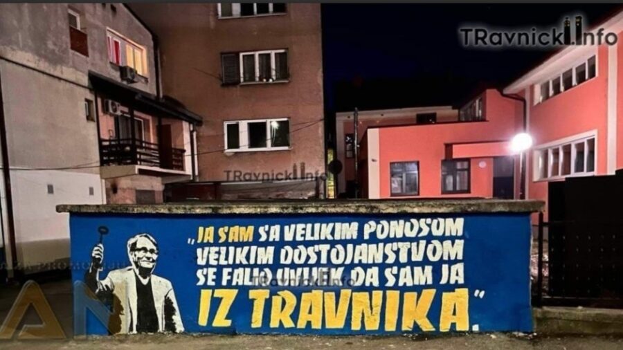 Iza Crkve sv. Ivana Krstitelja u Travniku večeras je napravljen mural legendarnom Travničaninu, Miroslavu Ćiri Blaževiću.