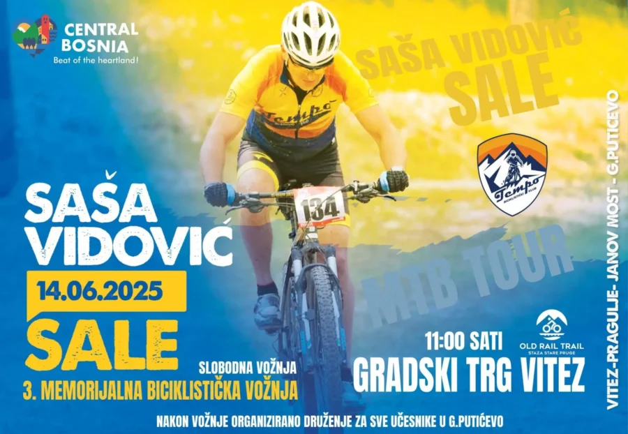Treća memorijalna MTB vožnja „Saša Vidović Sale!“ održat će se u subotu, 14.06. 2025. godine, u organizaciji Biciklističkog kluba Tempo i uz podršku Turističke zajednice KSB.