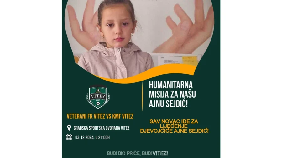 Na ovom događaju snage će odmjeriti veterani FK Vitez i KMF Vitez, a sav prikupljeni novac ide za liječenje djevojčice Ajne Sejdić. Ovo je prilika da pokažemo zajedništvo i podržimo Ajnu u njenoj borbi.