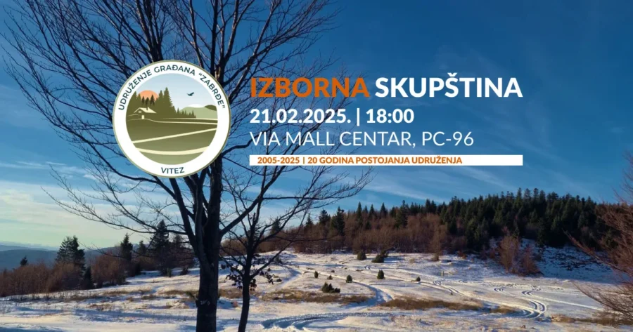 Sve članove iz UG ‘Zabrđe’ pozivaju na na skupštinu Udruženja građana “Zabrđe” Vitez koja će se održati u petak, 𝟐𝟏. 𝐯𝐞𝐥𝐣𝐚č𝐞 𝟐𝟎𝟐𝟓. 𝐠𝐨𝐝𝐢𝐧𝐞,u maloj dvorani (III kat) Via Mall centra (bivši Franšizni centar BiH), PC-96 Vitez, s početkom u 𝟏𝟖 𝐬𝐚𝐭𝐢.