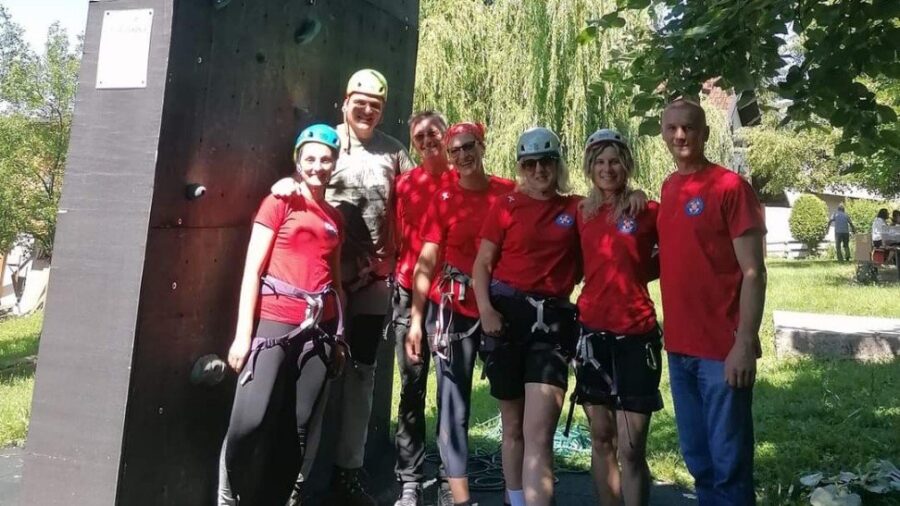 Nakon 2,5 h uspona i orijentiranja po nepristupačnom terenu, uslijedilo je i penjanje na umjetnoj stijeni, a kasnije i abseiling (spuštanje) na prirodnoj.