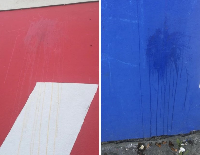Hajdukov grafit koji je nacrtan na zgradi u ulici Hrvatskih branitelja jutros (ponedjeljak 3.kolovoza) je osvanuo sa tragovima razbijenih jaja. Nepoznati počinitelj oskrnavio je Hajdukova grafit bacajući jaja na njega te su na grafitu ostale mrlje.