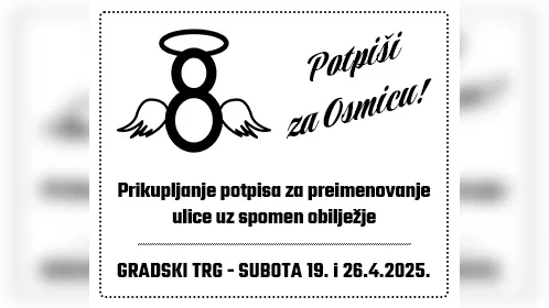 Udruga „Osmica“ će organizirati prikupljanje potpisa na Gradskom trgu u subotu, 19.4.20225. u vremenu od 9:00 do 17:00 kao i subotu, 26.04.2025. u istom vremenu. Ukoliko želite potpisati inicijativu, a spriječeni ste u navedenom vremenu, to možete učiniti i radnim danom od 21.4.2025. do 25.4.2025. na spomen parku „Osmica“ ili kontaktirajte organizatore kako bi oni došli do Vas. Na stranici Osmice bit će objavljen i link za online potpis inicijative za sve one koji žele biti dio ove podrške, a spriječeni su doći.