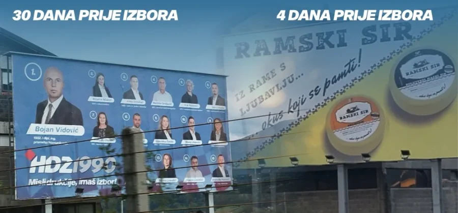 “Poput svih političkih opcija, pravovremeno smo zakupili mjesta za oglašavanje, među njima i veliki reklamni pano na posjedu jednog viteškog poduzeća. Međutim, plakat na kojem je bilo istaknuto 15 naših kandidata u sred bijela dana nestaje, odnosno biva pokriven reklamom za ramski sir.