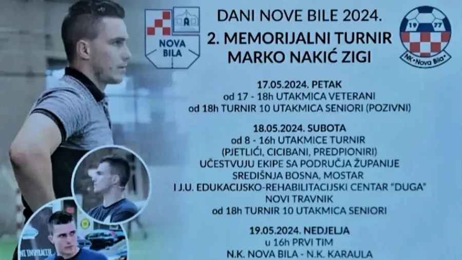U organizaciji Nogometnog kluba Nova Bila, a povodom aktivnosti Dani Nove Bile 2024. održat će se 2. memorijalni turnir “Marko Nakić Zigi”.