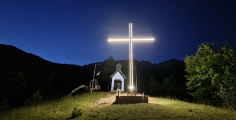Iznad travničog sela Paklareva, malog mjesta u Bosni i Hercegovini, svečano je postavljen veliki križ kod kapelice na Paljikama, piše Travnički.ba.
