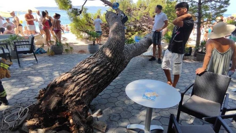 Na plažu punu kupača u Baškoj Vodi, na predjelu Podluka, danas oko 12 sati palo je stablo.