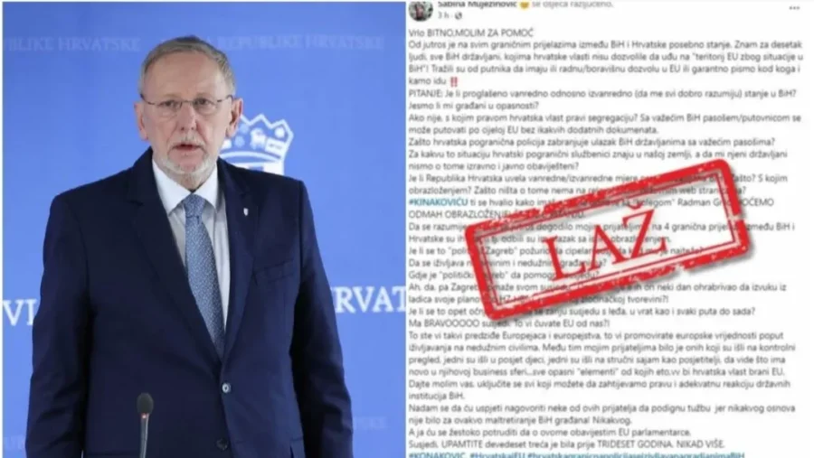 Na društvenim mrežama danas se počela širiti dezinformacija da se državljanima BiH zabranjuje ulazak u Hrvatsku, što je izazvalo veliku paniku među građanima, pogotovo u ovom osjetljivom političkom trenutku.