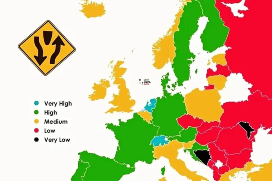 Karta koja označava europske zemlje prema kvaliteti njihovih cesta i autocesta izazvala je niz komentara i reakcija na društvenoj mreži Reddit.