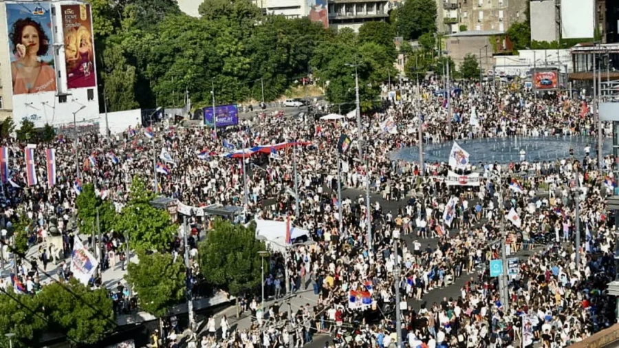 Studentski prosvjed “Vidimo se na Vidovdan” počeo je u 18 sati na Trgu Slavija u Beogradu. Duge kolone građana i studenata iz svih pravaca danas su se slivale ka centru Beograda.