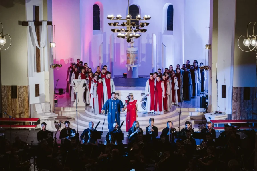 Za oratorij je izrađeno je čak šezdeset kostima koje potpisuje kostimografkinja Jasmina Pacek, a autorica scenskog pokreta je Sanela Janković. U izvedbi sudjeluju solisti Opere HNK u Zagrebu i to Josipa Bilić, Roko Radovan, Siniša Štor uz Zbor HNK Mostar pod vodstvo Katje Krolo Šarac i četvero glumaca – naratora HNK Mostar: Nikolina Marić, Mirela Kordić, Ivo Krešić i Robert Pehar.