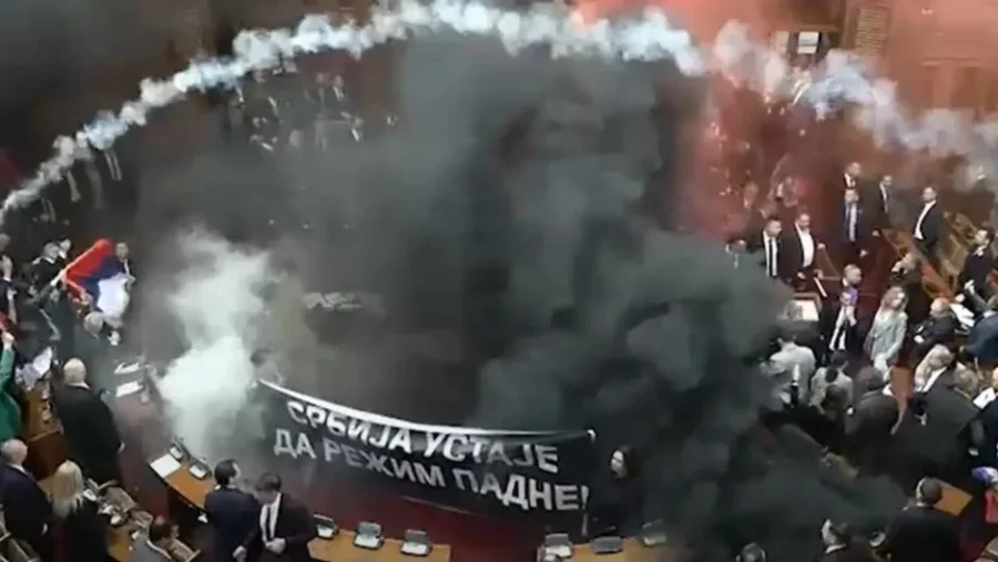 Predsjednica parlamenta je pozvala sve zastupnike da odu u svoje klubove i sačekaju da Uprava kriminalističke policije izvrši uviđaj zbog unošenja pirotehničkih sredstava, kako bi kasnije pomogli ženama koje rade u Skupštini da očiste salu.
