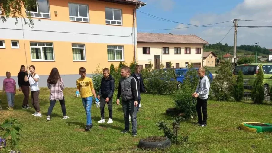 Učenici geo-ekološke sekcije VII5 i IX5 razreda pokazali su izuzetan timski duh i kreativnost u uređenju školskog dvorišta Osnovne škole Vitez u Kruščici zajedno sa nastavnicom Eminom Pašić.