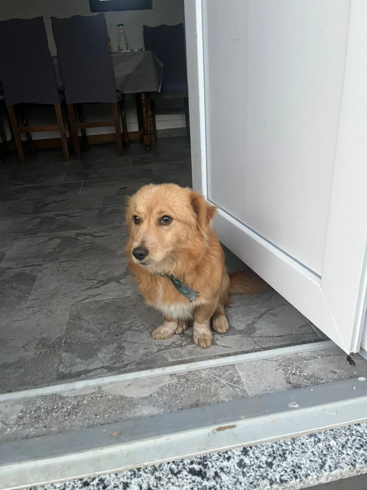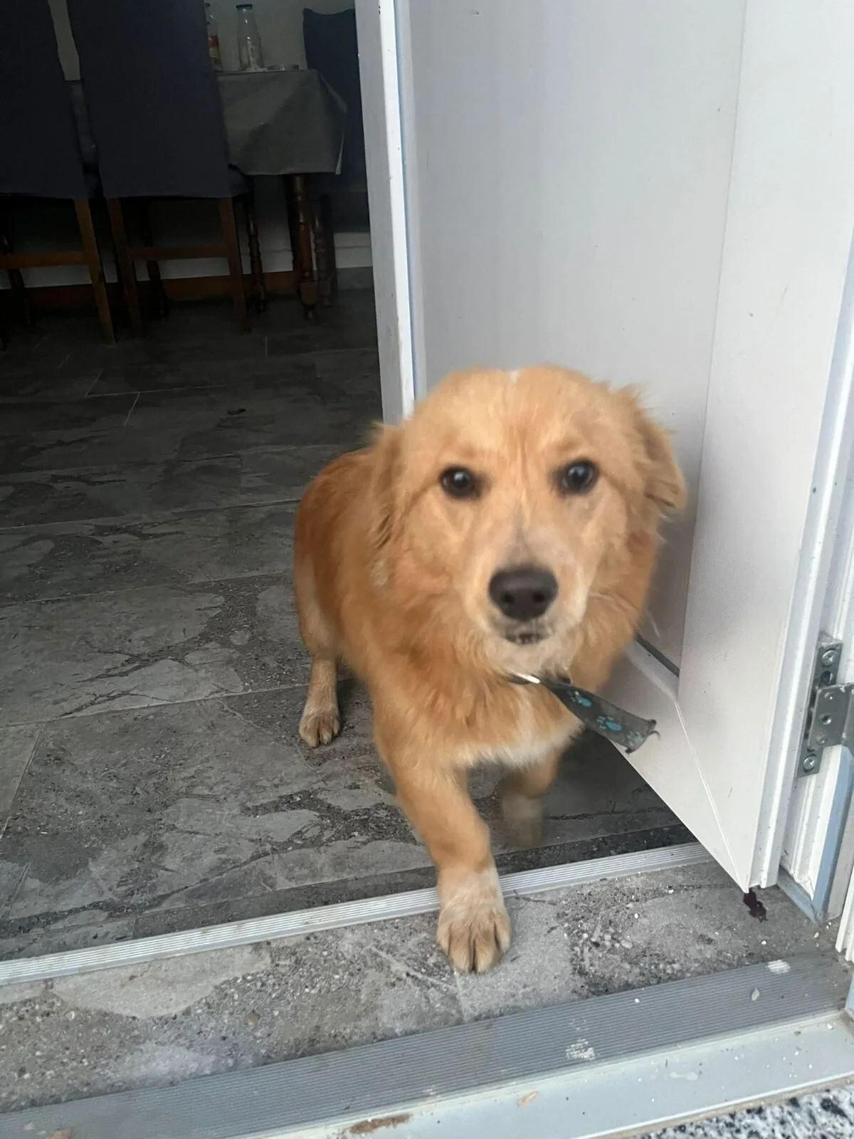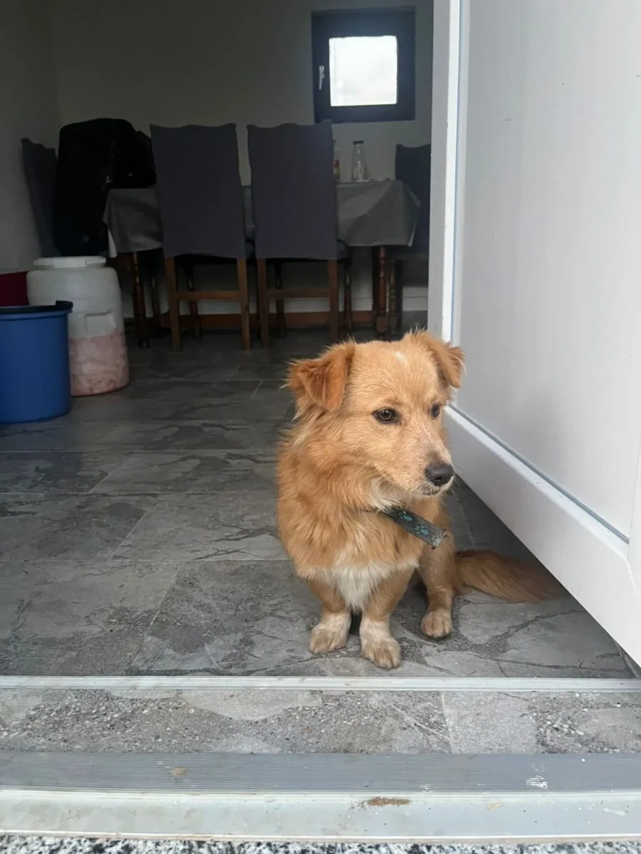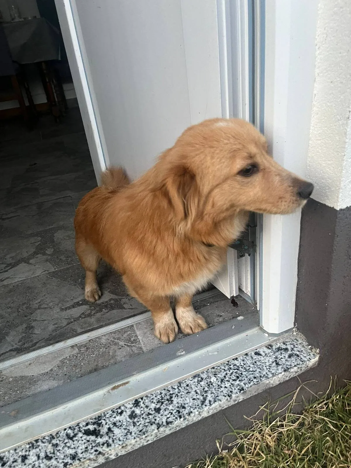 Pas je smeđkaste boje s bijelim prsima i kratkim nogama. Najvjerojatnije se radi o mješancu jazavčara i terijera, što je vrlo česta i simpatična kombinacija — mali, hrabar, pametan i odan pas.