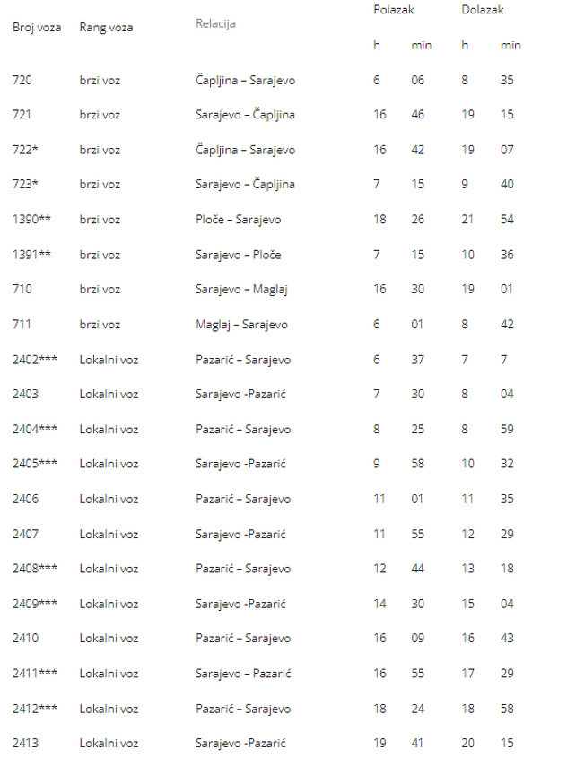 Inače, riječ je o sezonskim promjenama termina uslijed zimskog perioda, a o narednim promjenama termina polazaka i dolazaka vlakova iz Željeznica FBiH će blagovremeno obavijestiti javnost.