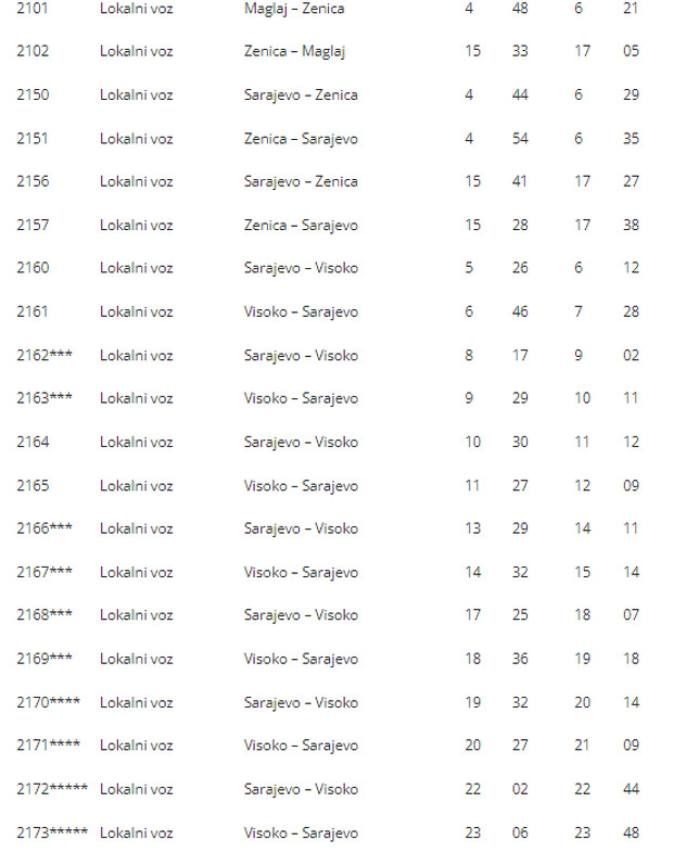 Osim novih termina, iz Željeznica FBiH su naveli koji to vlakovi, odnosno na kojim relacijama vlakovi ne prometuju tokom dana vikenda, blagdana i slično.